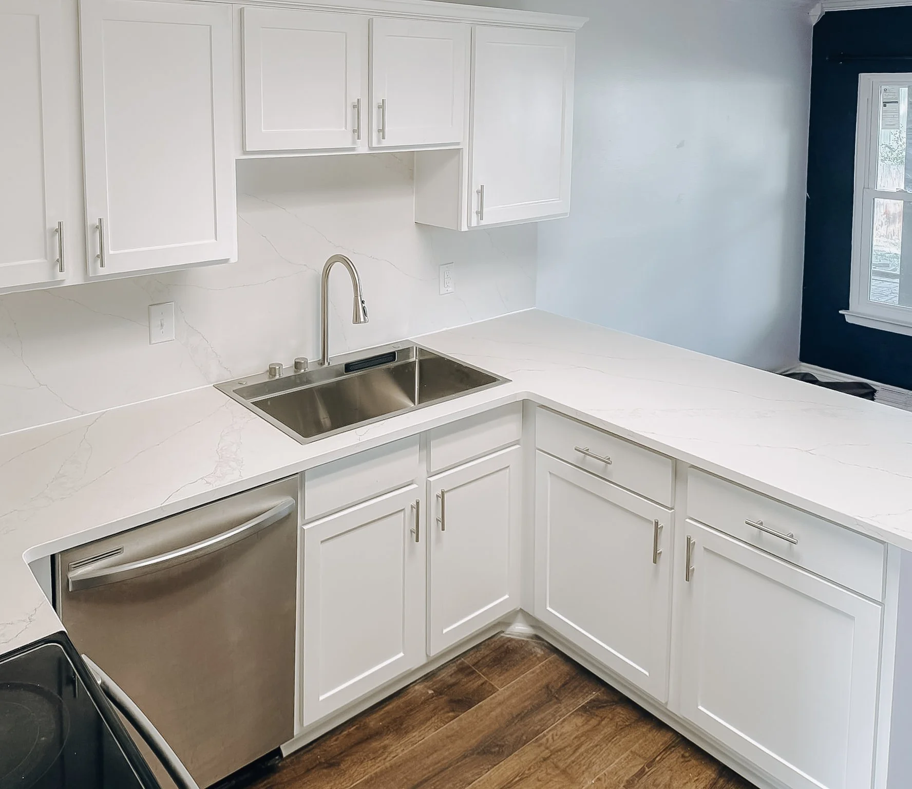 Painted cabinets, new countertops, backsplash, sink and faucet